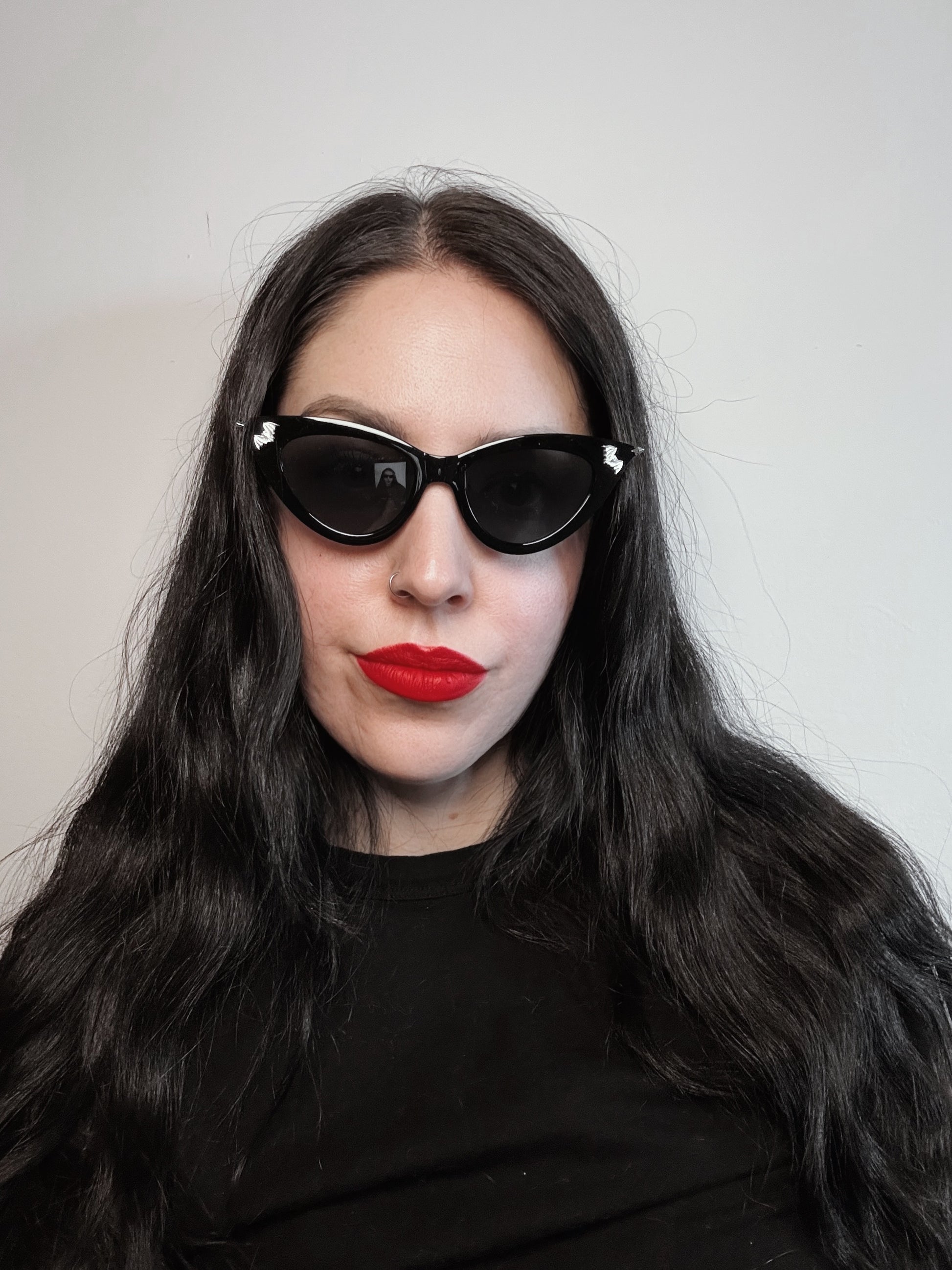 These cateye sunglasses are finished with silver bat accents, blending vintage glamour with a dark, nocturnal edge. Playful yet eerie, they’re made for those who like their style sharp, dramatic, and unapologetically gothic.